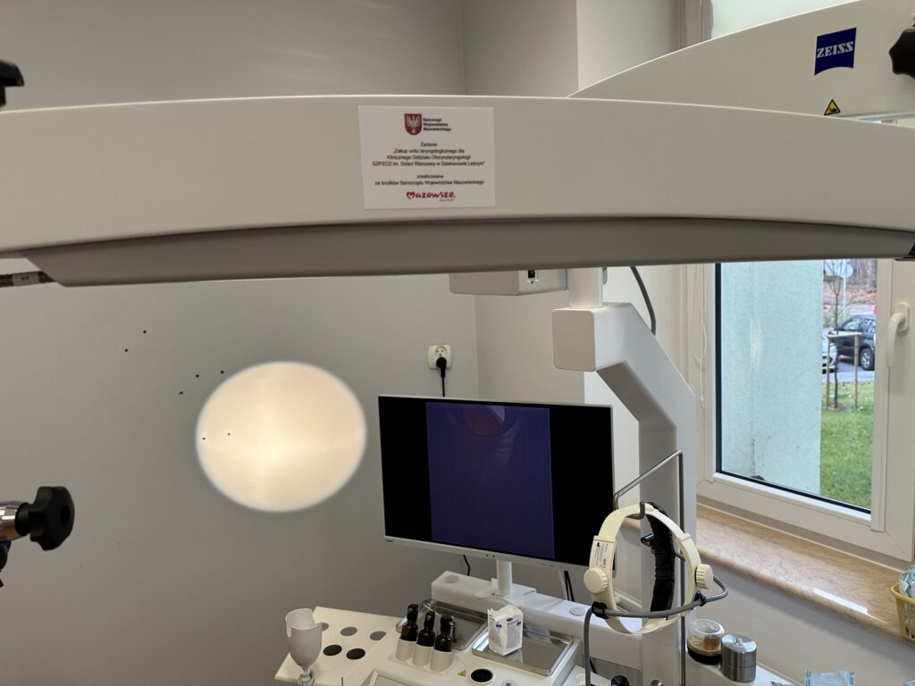 Samodzielny Zespół Publicznych Zakładów Opieki Zdrowotnej im. Dzieci Warszawy w Dziekanowie Leśnym realizuje projekt pn. „Zakup unitu laryngologicznego dla Klinicznego Oddziału Otorynolaryngologii SZPZOZ im. Dzieci Warszawy w Dziekanowie Leśnym”, wartość dotacji na realizację projektu wynosi 687 024,00 zł.
